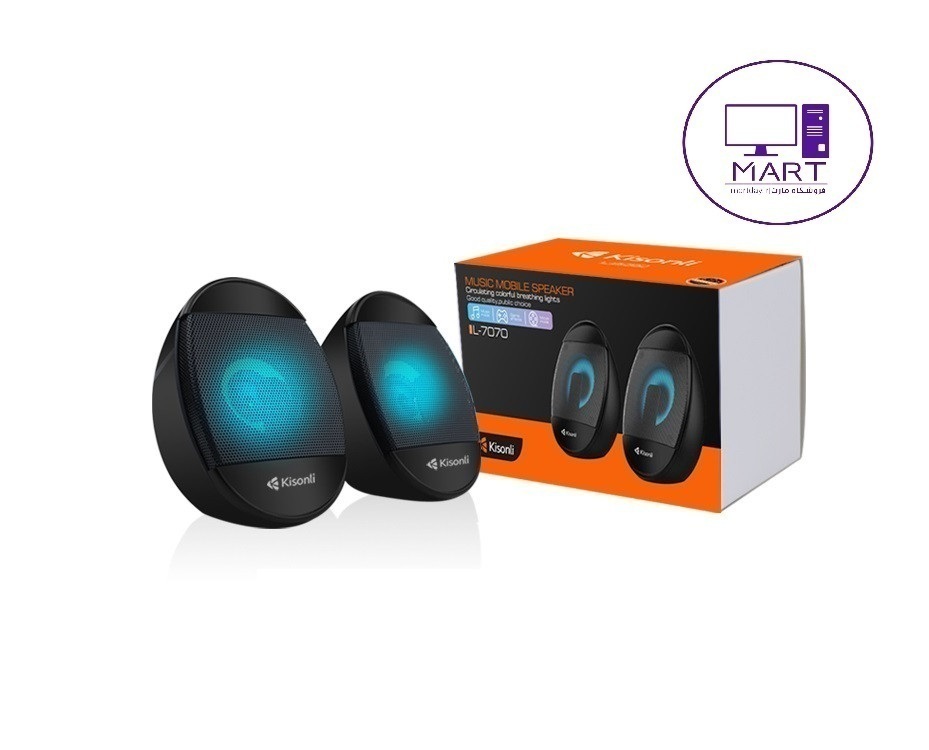 اسپیکر مدل L-7070 سری جدید از اسپیکر های شرکت Kisonli است. بلندگو دو تیکه L7070 با قابلیت رقص نور RGB که توسط LED های بسیار ظریف طراحی کرده محیط و میز کار شما را به یک تجربه باورنکردنی تبدیل می کند. این اسپیکر با استفاده از خروجی AUX صدا به کامپیوتر، لپتاپ، موبایل، تبلت و دیگر لوازم از اینقبیل متصل میشود.بر روی کابل این محصول یک پنل ولومر برای کم و زیاد کردن صدا جایگذاری کردن تا کاربر بتواند صدای آن را مدیریت کند.شما میتوانید این مدل از اسپیکر را در محل کار ،منزل و حتی در مکان های عمومی استفاده کنید.منبع تغذیه برق اسپیکر کیسونلی مدل 7070 از طریق پورت USB می باشد.