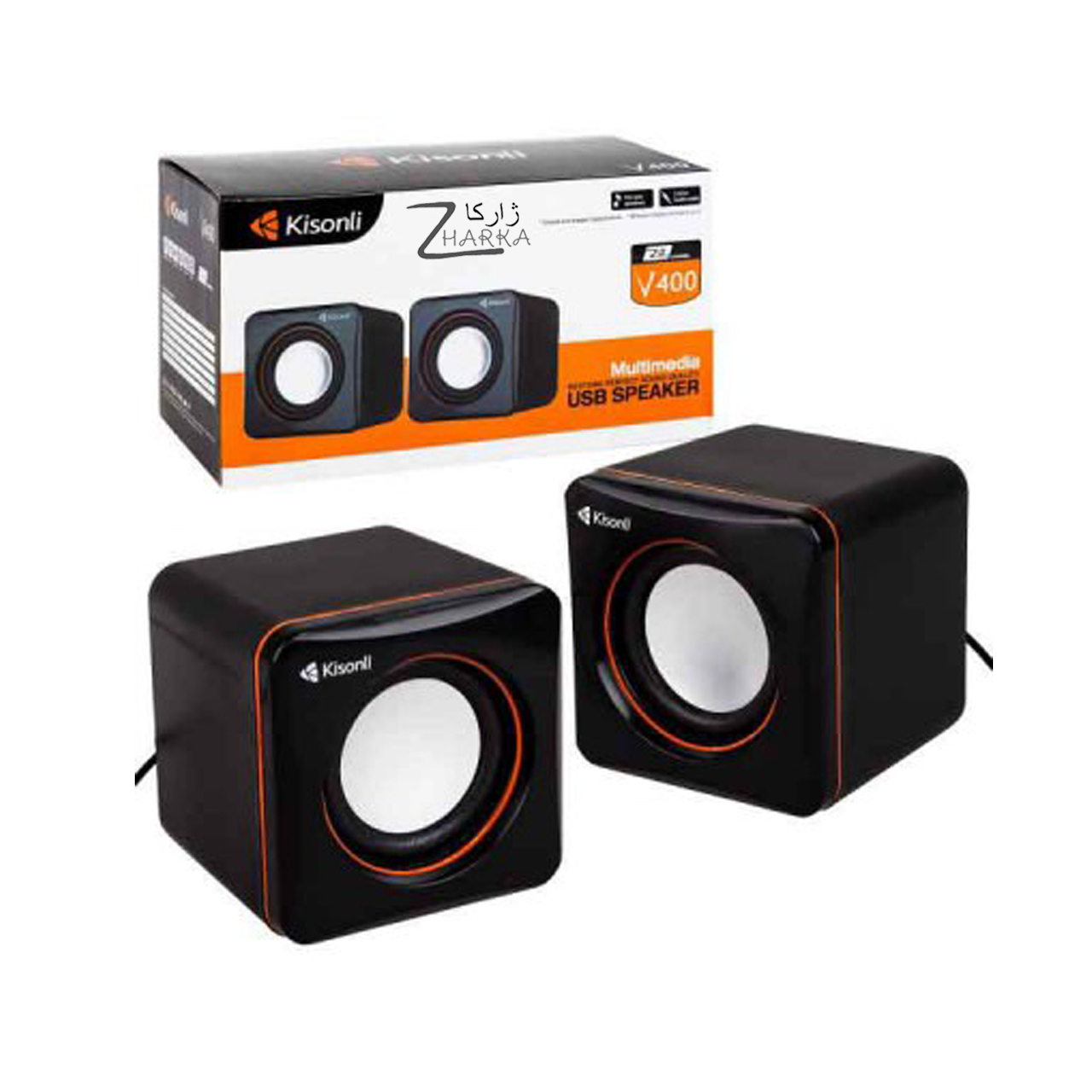 اسپیکر V400 از سری اسپیکرهای رومیزی شرکت کیسونلی (Kisonli) است. این اسپیکر از طریق کابل AUX به کامپیوتر، لپتاپ، موبایل و کلیه تجهیزاتی که از خروجی جک 3.5 میلی متری صدا پشتیبانی می کنند متصل شده و کاربر را در پخش موسیقی همراهی میکند.