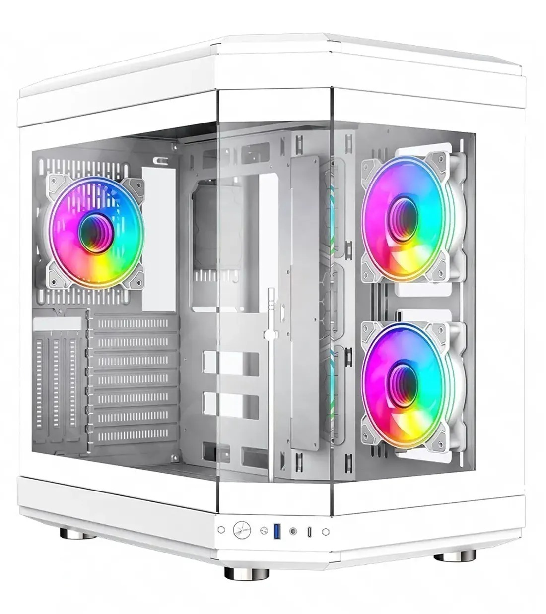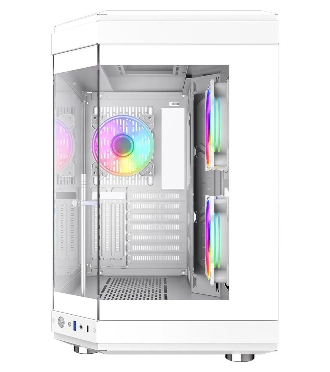 در بخش کناری منشوری در پایین کیس سری پورت های کنترل تعبیه شده که شامل دکمه روشن و خاموش، دکمه تنظیم led ، پورت USB3.0 ، Combo Audio و درگاه تایپ C نسل 2 وجود دارد که دسترسی شما را به امکانات کیس راحت تر می کند.