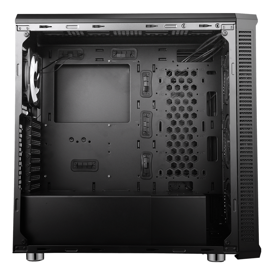 این کیس گیمینگ که ب افرم ظاهری Mid-Tower و در ابعاد بزرگ تولید شده است، از مدیریت نصب کابل (Cable Management) پشتیبانی میکند. بنابراین میتوان قطعات سختافزاری را بدون شلوغی و بههم ریختگی کابلها در داخل این کیس نصب نمود.