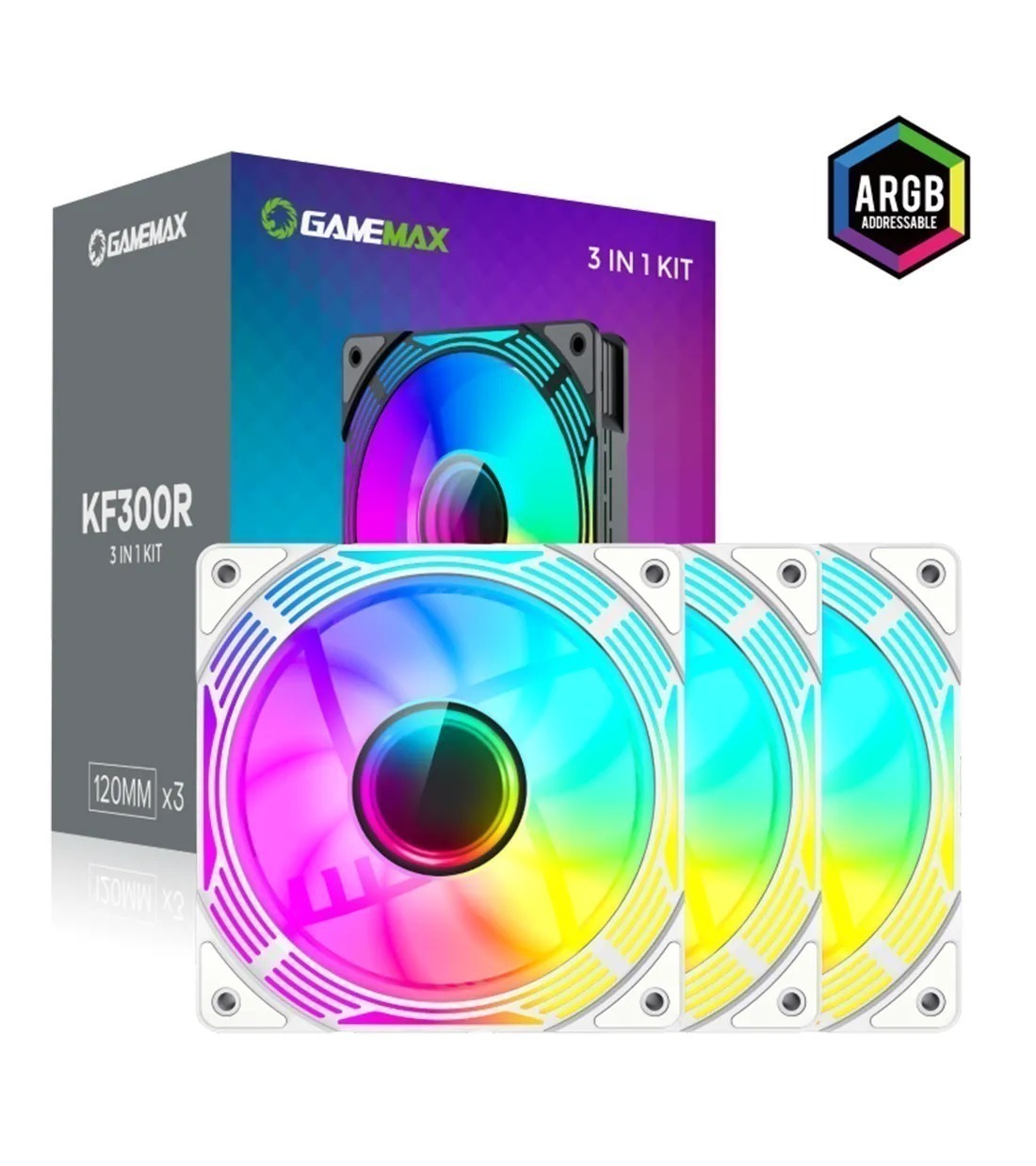 GAMEMAX KF300R Reverse Kit White ARGB 120mm 3 in 1 Case Fan