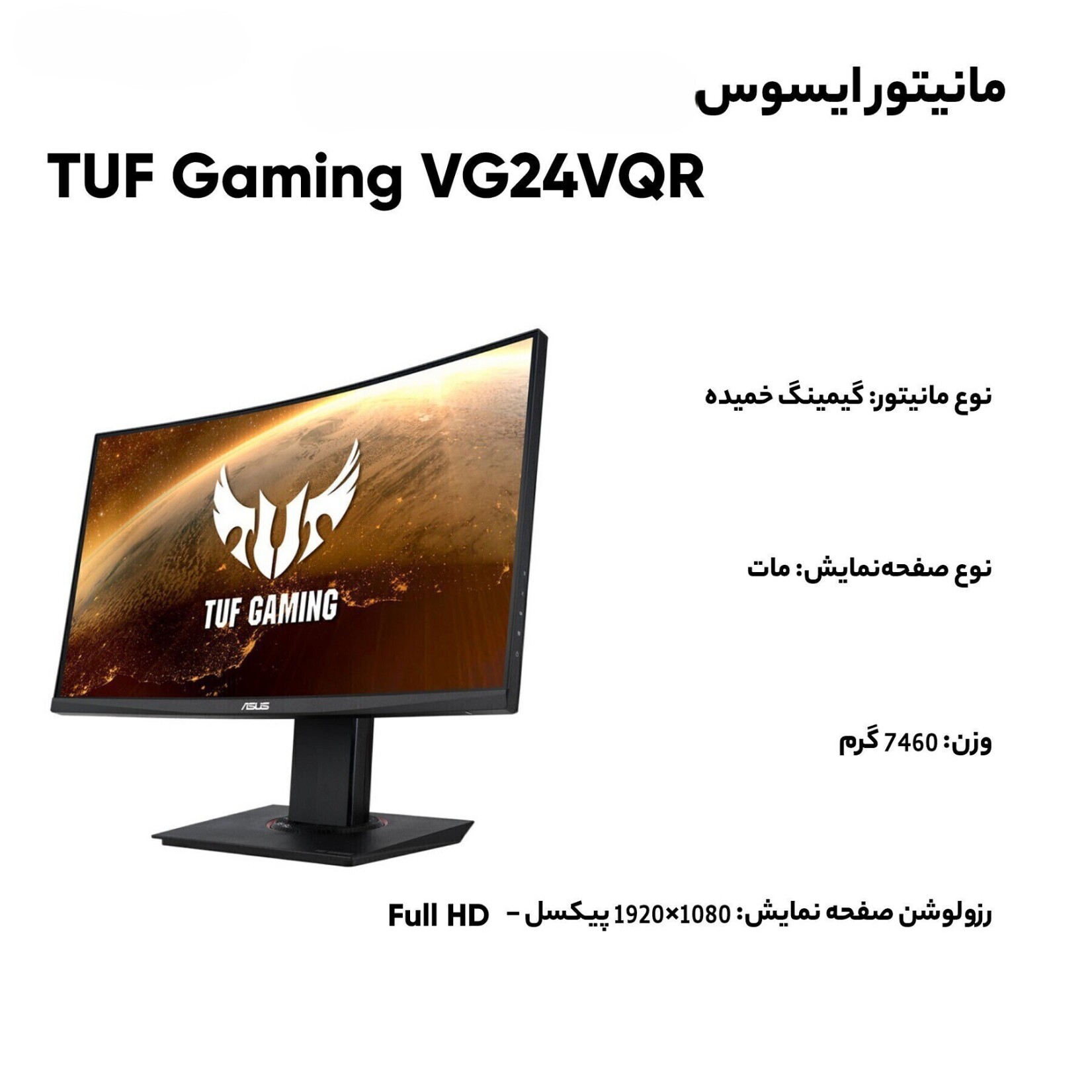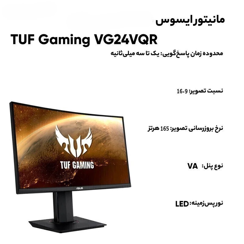 مانیتور خمیده ایسوس مدل TUF Gaming VG24VQR سایز 24 اینچ کد کالا 7011