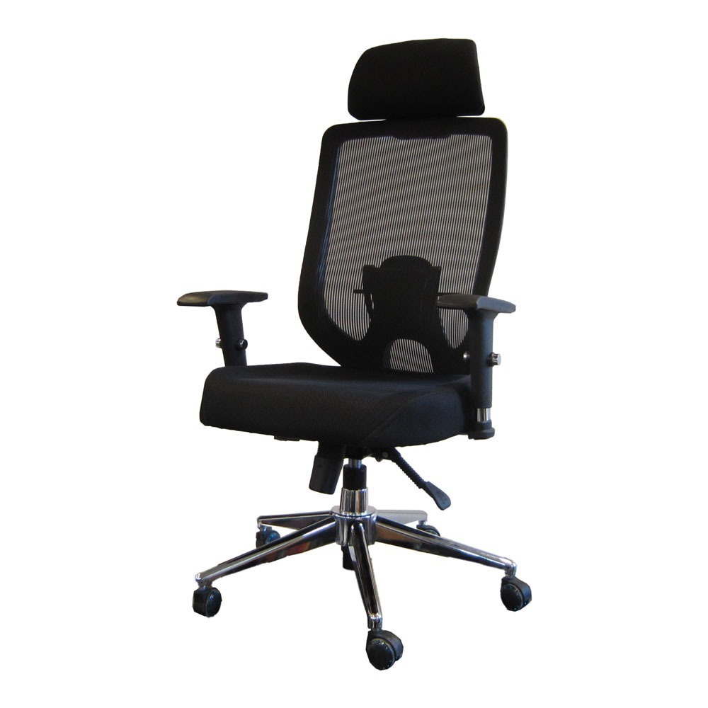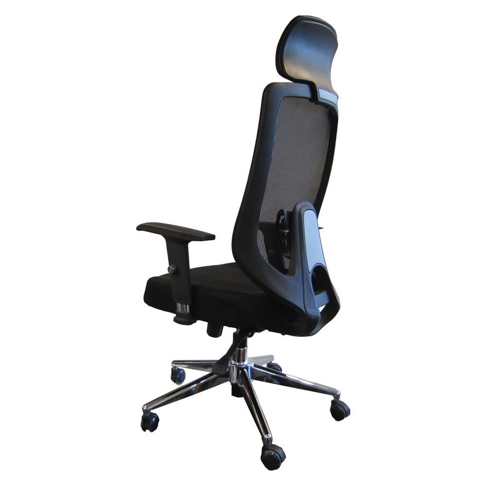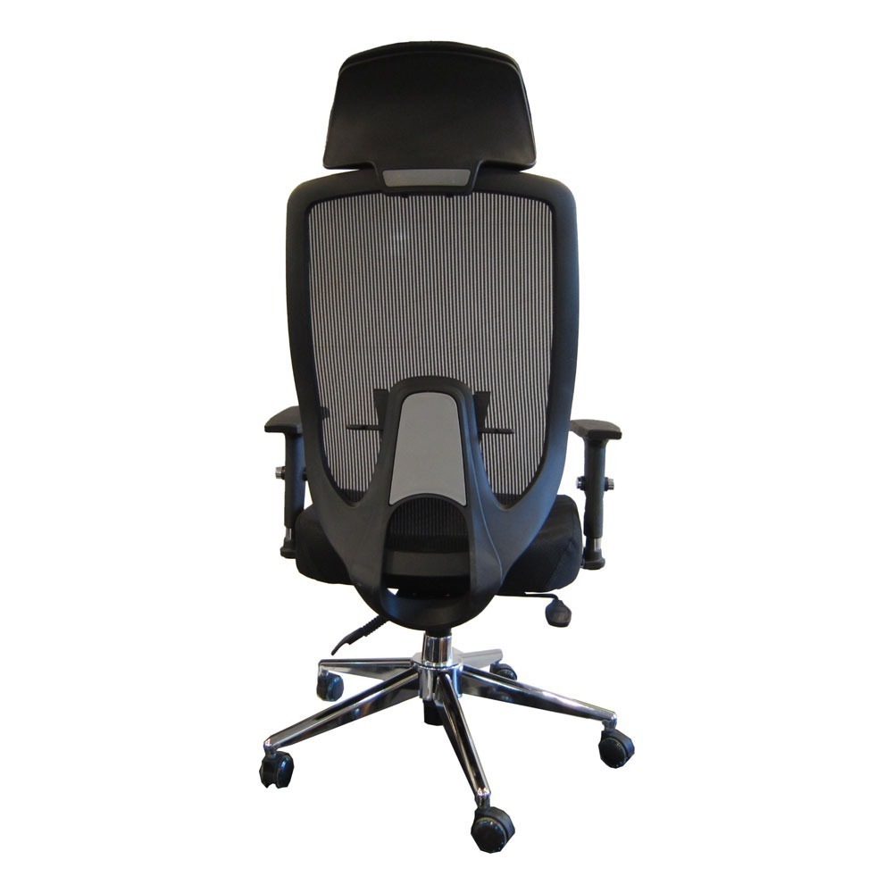 روکش کفی و پشتی این صندلی مدیریتی از پارچه مش یا توری تولید و کلاف شده است.