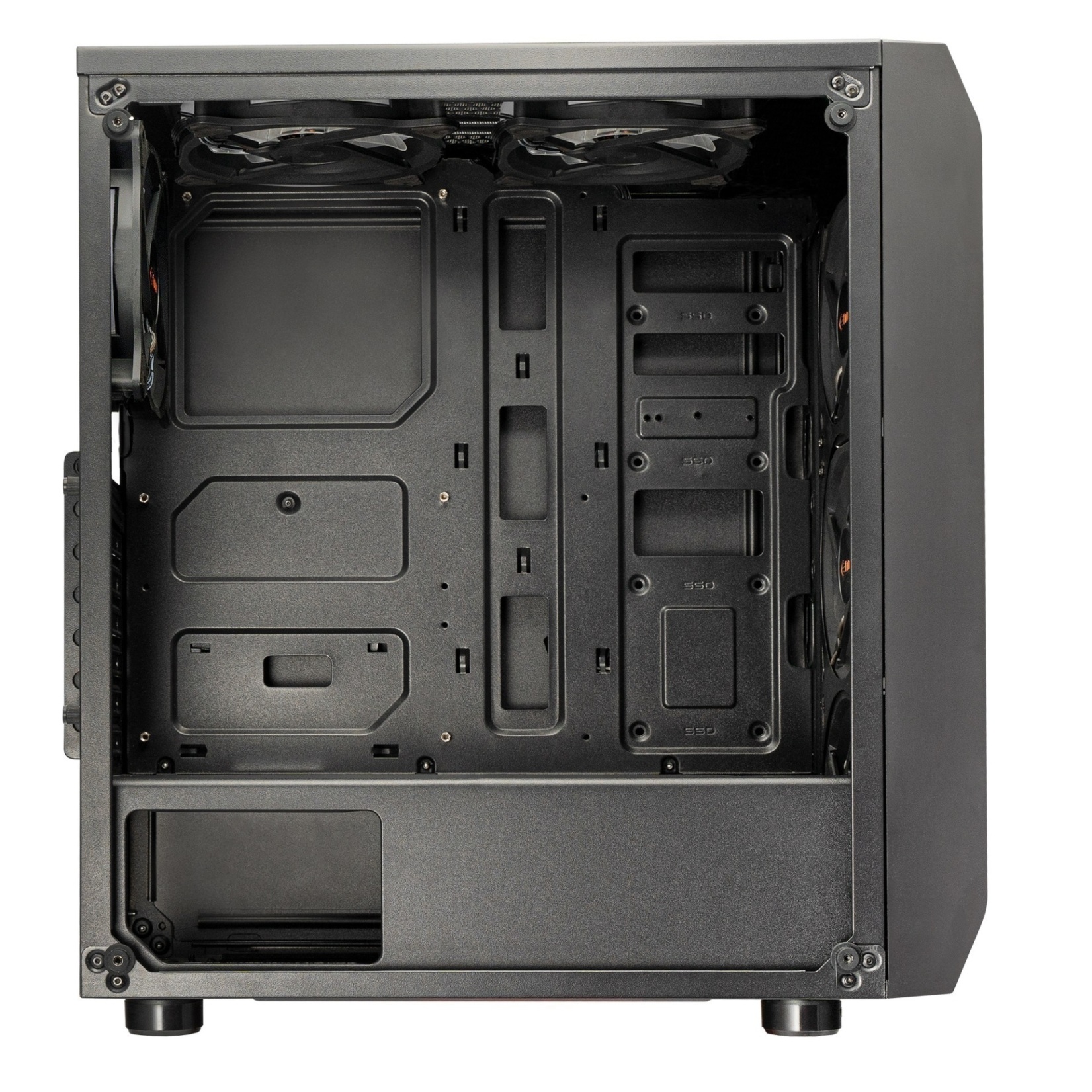 در پنل کناری کیس که از شیشه سخت حرارت دیده دودی جهت نمایش کامل فضای داخلی کیس استفادهشده و طراحی خاص پنل جلویی علاوه بر بیشتر شدنزیبای بصری باعث بهتر شدن عمل گردشهوا نیر در کیس شدهاست. همچنین استفاده هوشمند از نوار های RGB در پنل جلوه ای خاص به آن بخشیده است.